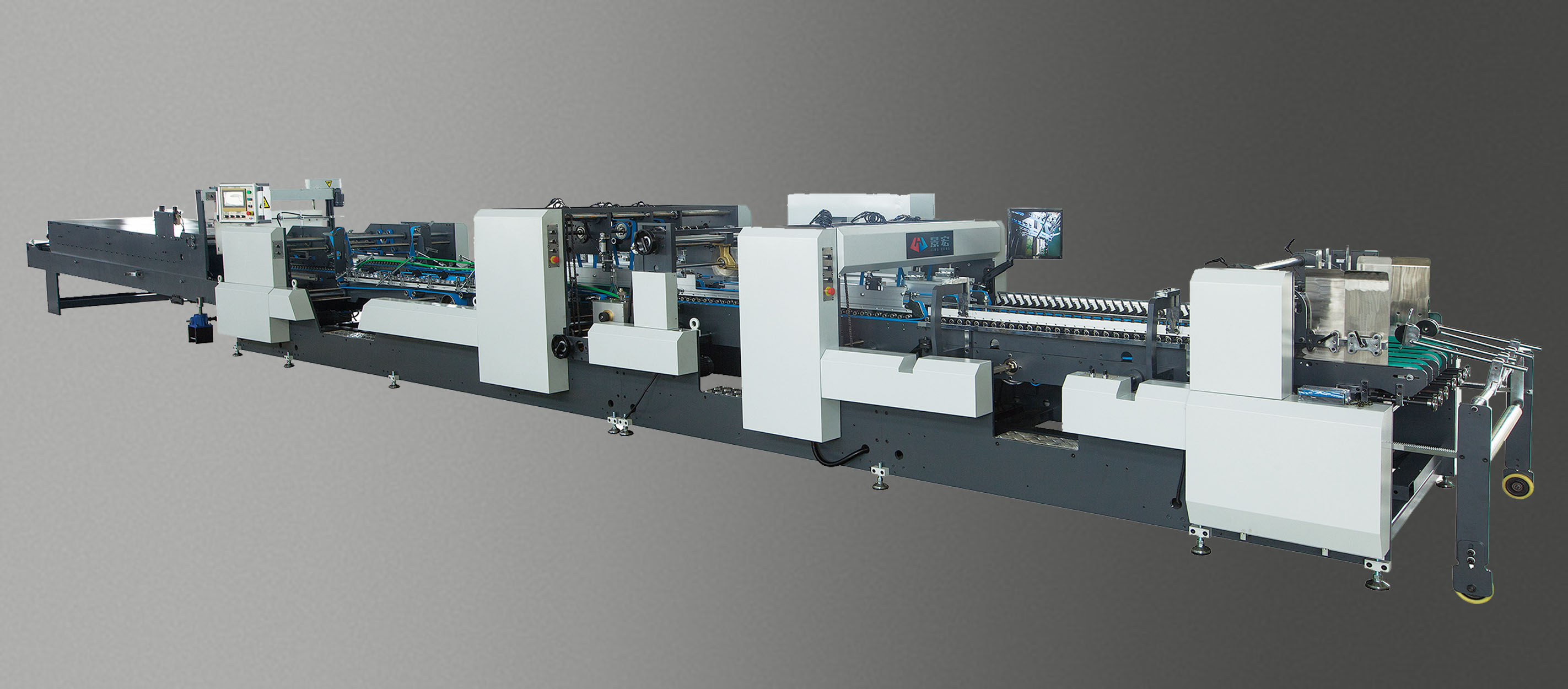 特有超長本折模塊,使紙板在此功能充分舒展后順勢展成型,左右輸送帶速度可單獨調(diào)節(jié),以校正箱杯確保直線輸送。