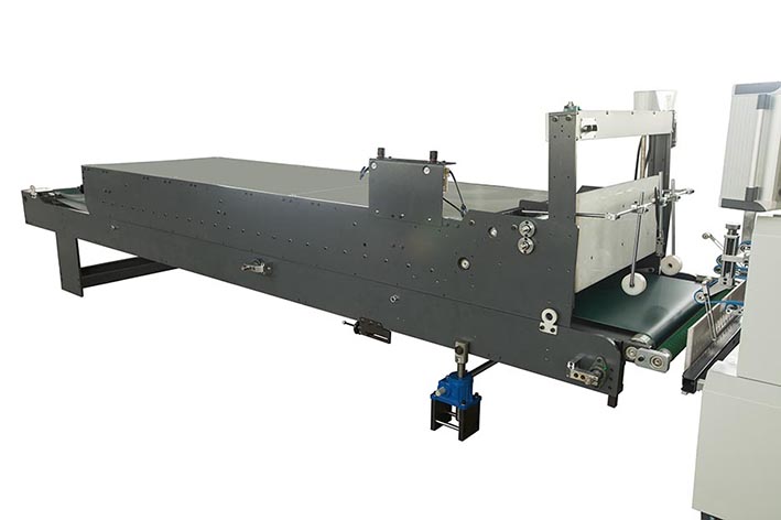 送紙部由獨立電機(jī)調(diào)速驅(qū)動系統(tǒng),真空吸風(fēng)帶,保證紙板輸送精確、穩(wěn)定。